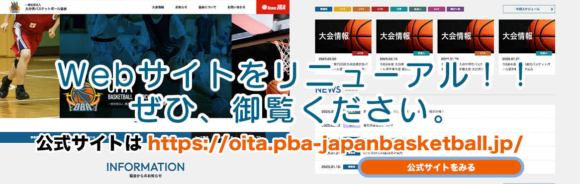 広報 2025 U18 OBALive配信のご案内 2026.01.05 oitabasket-master U18の下記の大会において、決勝戦(男女)をYouTubeで配信を行います。 令和7年度 大分県高等学校新人バスケットボール大会 女子の部:2026年1月12日(月曜)/12:00〜(予定) 男子の部:2026年1月12…