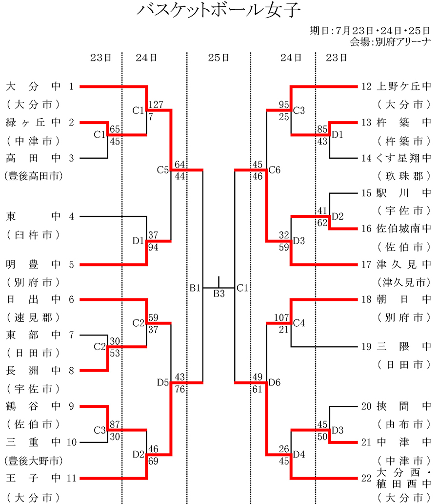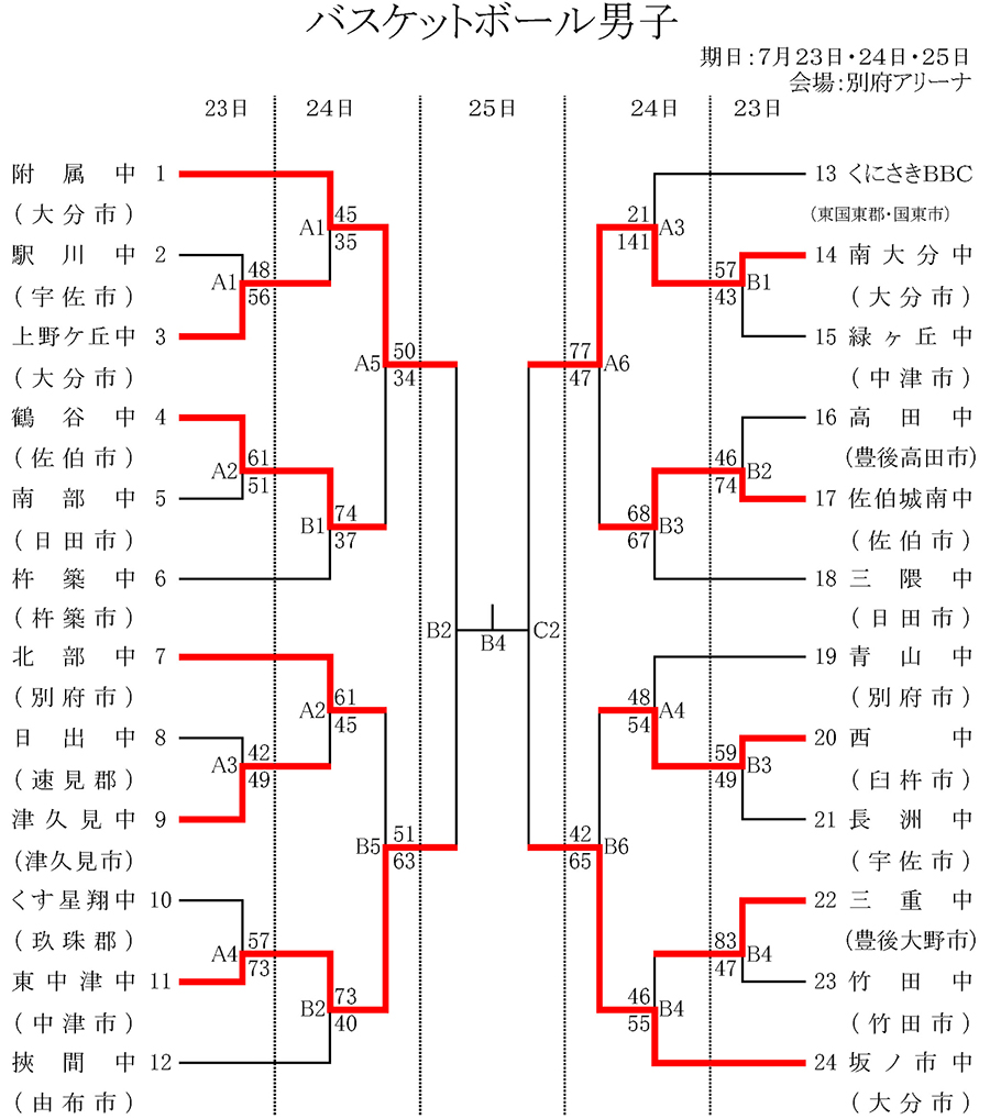 令和7年度 第63回大分県中学校総合体育大会 バスケットボール競技2日目の結果が決定しましたのでお知らせします。