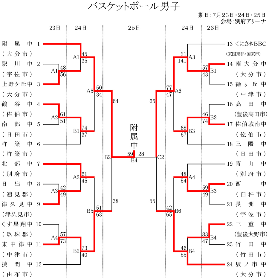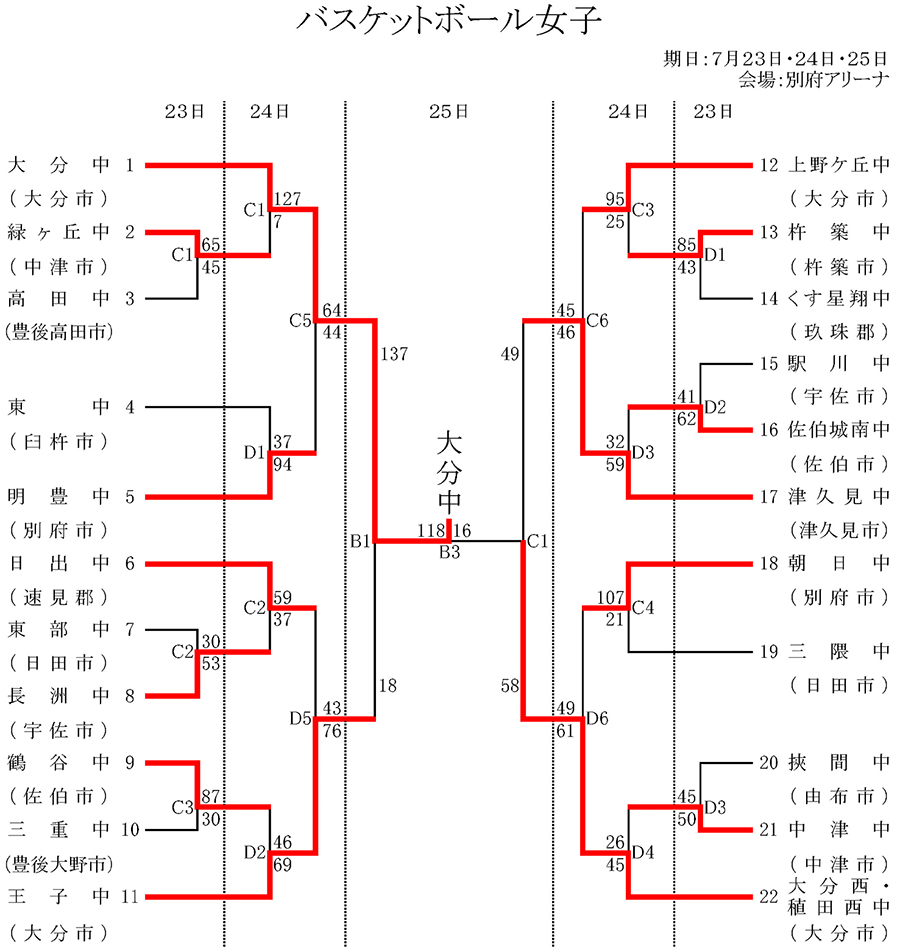 令和7年度 第63回大分県中学校総合体育大会 バスケットボール競技の最終結果が決定しましたのでお知らせします。