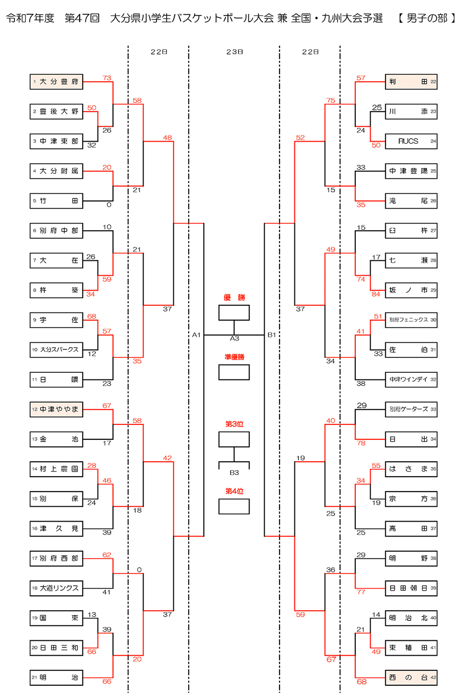 【男子の部 第3日目結果】第47回大分県小学生バスケットボール大会兼全国・九州大会予選