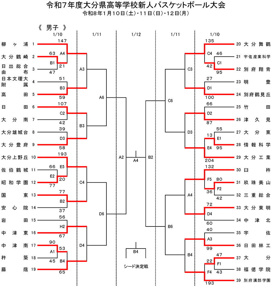 令和7年度 大分県高等学校新人バスケットボール大会1日目の結果が決定しましたのでお知らせします。
